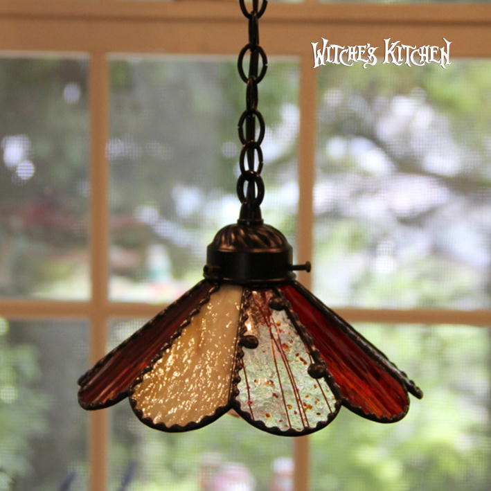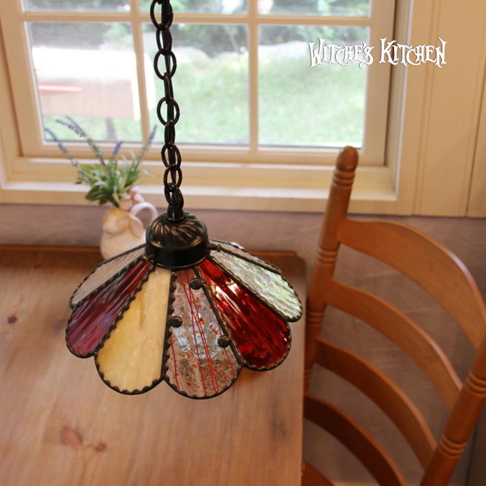 9枚の美しいガラスの花びらのペンダントランプ、お部屋の色んな所に付けて欲しいですね。