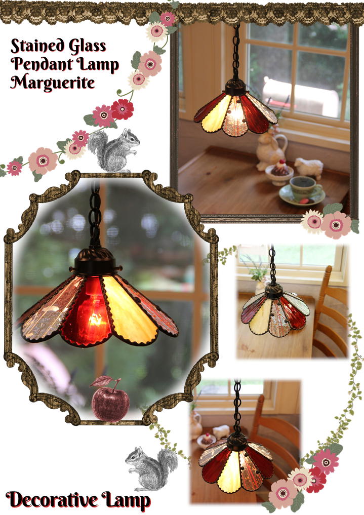 赤や黄色、元気カラーのペンダントランプ『マーガレット』です。