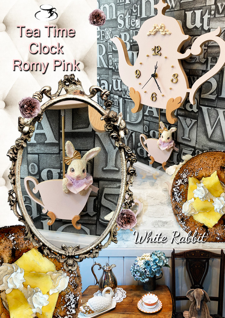振り子のティーカップからピョコッと顔を出した白うさぎも、